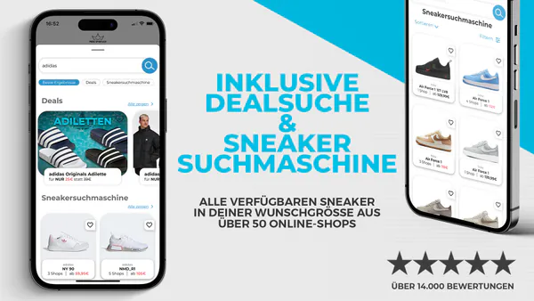 Seit mehr als 6 Jahren versorgen wir unsere Community mit den besten Deals für Sneaker, Street- und Sportswear. Mit unserer App verpasst ihr nie wieder einen krassen Sale in eurem Lieblings-Shop oder mega beliebte Sneaker zu den besten Preisen. Durch unsere langjährige Zusammenarbeit mit Brands wie NIKE, adidas oder Puma und Shops wie Foot Locker, Snipes, asphaltgold und vielen mehr, findet ihr in unserer Prinz Sportlich App regelmäßig exklusive Gutscheincodes, die ihr so nirgendwo anders bekommt. Über 15.000 5-Sterne Bewertungen in beiden App Stores konnten wir mit unserem kostenlosen Service schon sammeln – dafür ein dickes Dankeschön an jeden einzelnen aus unserer Community, der unsere App feiert und uns eine positive Bewertung dagelassen hat. Ladet euch gratis unsere App herunter und macht euch selbst ein Bild. Der nächste fette Deal für euren Lieblings-Sneaker wartet schon auf euch!